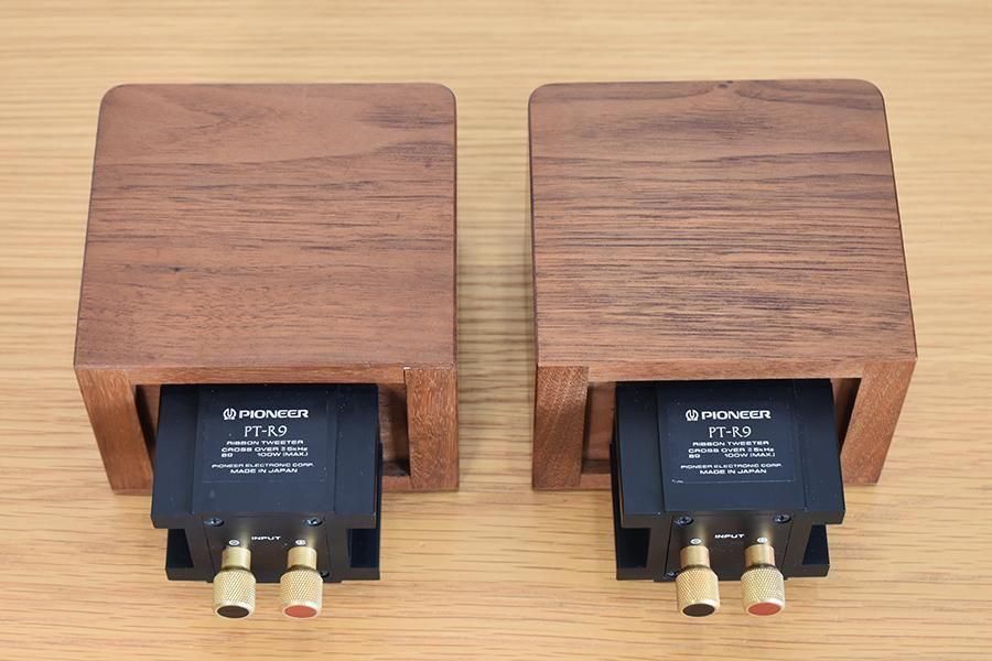 リボン型トゥイーター。ベリリウム振動板、アルニコマグネット採用。ウォールナット無垢材を採用し日本伝統の組つぎ工法により組み上げた専用ウッドケースつき。